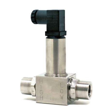 Trasduttore di pressione differenziale wet-wet con elevata risposta dinamica, accuratezza 0,15% FS, range 12 mbar…7bar. Pressione di linea 200 bar. Uscite 0-5 V, 4-20mA, regolazione fissa di zero e span.